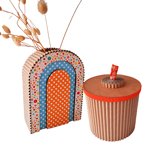Effets de matière : vous apprendrez à exploiter le graphisme de la cannelure de carton pour réaliser des effets de matière sur la façade d’un miroir ou le couvercle d’une boîte que vous aurez réalisé au préalable sur des gabarits de l’atelier.